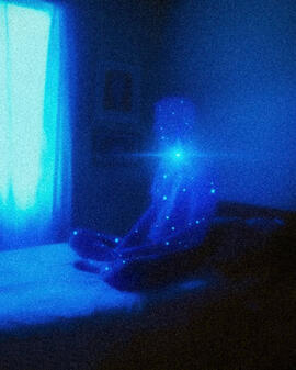 ”While she was in a crowd of dazzling white light, she was somehow blue.”